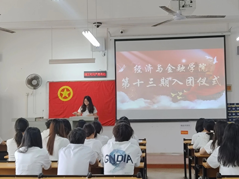 国歌唱罢,太阳成城集团tyc234cc分团委学生副书记谭聂迟宣读新团员名单。每一个名字的宣读,都代表着一份青春的责任与担当。在校园这片培育青春的土壤里,新团员们即将以共青团员的身份,在学习求知、社会实践中,服务集体,践行使命。